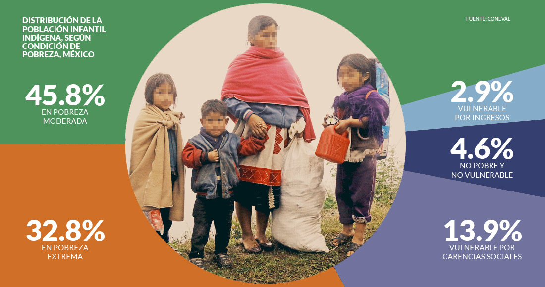 indígena en México, 45.8 por ciento vive en pobreza moderada; 32.8 por