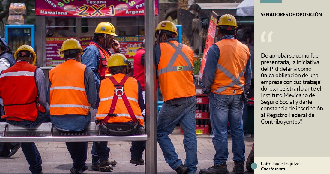 Fueron dos los senadores que presentaron un documento para reformar las Leyes Secundarias de la Ley Federal del Trabajo. Ambos son del PRI y ambos tienen como origen dos organizaciones que son también tricolores desde hace décadas: la CTM y la CROC.Faltan dos semanas para que terminen las actividades de la actual legislatura y las alertas están encendidas ya que, conforme el tiempo se agota, se abre la posibilidad de que se apruebe esa Ley sin tomar en cuenta todas las opiniones y con la intención de ponerle fin al derecho laboral en México, alertan senadores de oposición.En las siguientes dos semanas, senadores del Partido Revolucionario Institucional (PRI) podrían aprobar, sin discusión ni consenso, los cambios a las leyes secundarias de la Ley Federal del Trabajo que hacen aún más flexible la subcontratación y ponen más trabas a las huelgas y a la contratación colectiva, alertaron senadores de la oposición.Se trata de cambios al Artículo 15 A de la actual Ley y es, por completo, una iniciativa completamente priista.El pasado 7 de diciembre, los senadores priistas, Tereso Medina Ramírez, quien es miembro de la Confederación de Trabajadores Mexicanos (CTM) desde 1980 y quien ha ocupado varios puestos dentro de esa organización, e Isaías González Cuevas, integrante y ex funcionario de la Confederación Revolucionaria de Obreros y Campesinos (CROC) y quien sólo tiene estudios de secundaria, presentaron al Senado de la República la iniciativa de reforma a la Ley Federal del Trabajo.Ahí proponen quitarle todos los candados a la subcontratación; es decir, le abre la puerta de par en par al outsourcing o subcontratación, con el mínimo de prestación laboral.De aprobarse tal cual fue presentada, dejaría como única obligación de una empresa con sus trabajadores el registrarlo ante el Instituto Mexicano del Seguro Social (IMSS) y darle una constancia de inscripción al Registro Federal de Contribuyentes (RFC).La iniciativa se presentó cuando en el Senado de la República la atención estaba puesta en la aprobación de la Ley de Seguridad Interior y forman parte de las leyes secundarias que están contempladas en la materia y que debían emitirse antes de febrero de 2018.