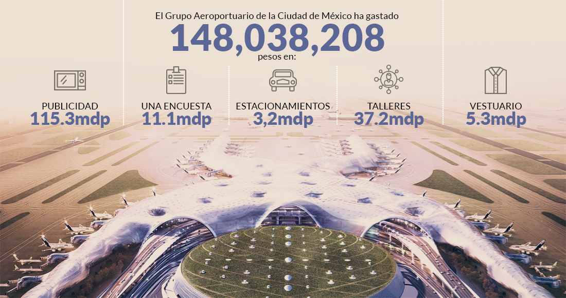Con acusaciones de poca viabilidad, el Nuevo Aeropuerto Internacional de México está en medio del debate entre funcionarios de la administración saliente y los candidatos que aspiran a ganar la elección presidencial del próximo 1 de julio. En específico, Andrés Manuel López Obrador, candidato de Morena ha puesto en entredicho la obra desde su planeación.Uno de los temas que más han criticado AMLO y diversos especialistas, además de legisladores de oposición, es su costo. Se duda de lo que el Gobierno federal ha pagado hasta ahora y de lo que terminará costando. Mientras tanto, es una realidad que el Grupo Aeroportuario de la Ciudad de México ha ejercido el dinero programado.Se trata de recursos millonarios que se han ido a campañas de publicidad en medios de comunicación, una encuesta, estacionamientos en la Feria del Caballo de Texcoco, talleres y hasta vestuario. El monto erogado por estos gastos suma 148 millones 038 mil 208 pesos.Para la realización de esta serie de tres partes, SinEmbargo revisó los 321 contratos que, hasta el momento, se han realizado para la construcción del NAIM, documentos con los que se puede analizar en manos de quién está la construcción, cómo fueron asignados los diferentes proyectos y los gastos que se han realizado hasta la fecha. De acuerdo con los datos