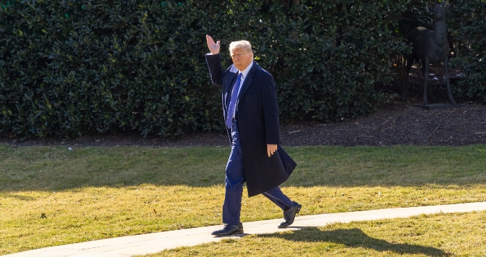 Donald Trump saludando mientras camina por el Jardín Sur en la Casa Blanca. Foto: Hu Yousong, XinhuaPor Bianca Casais